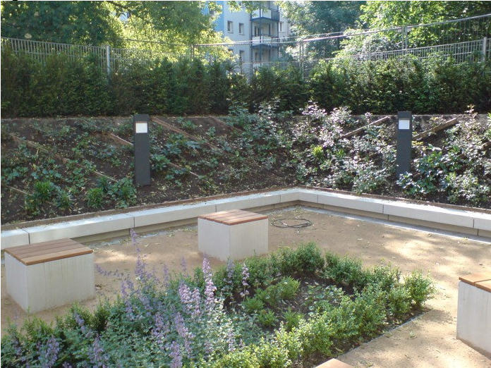 für den mit Sitzwürfeln gestalteten Innenhof.