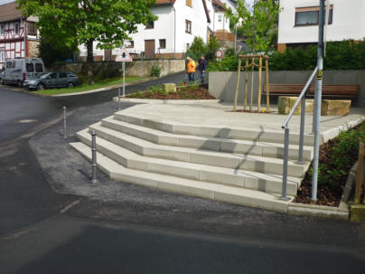 ca 238 lfdm Blockstufen in unterschiedlichen Radien mit Untertritt